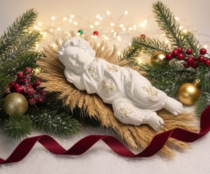 As aplicações em folha de ouro fazem dele uma peça única e conferem-lhe a elegância que necessita para recriar os ambientes natalícios.